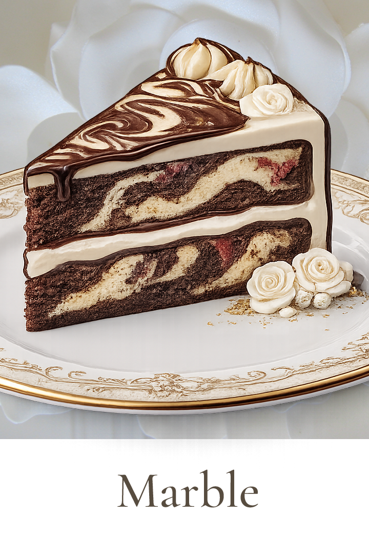 From timeless classics to seasonal inspirations, explore our full palette of cake canvases and exquisite fillings. Find your favorite, mix and match, or schedule a tasting to discover the perfect pairing for your celebration.